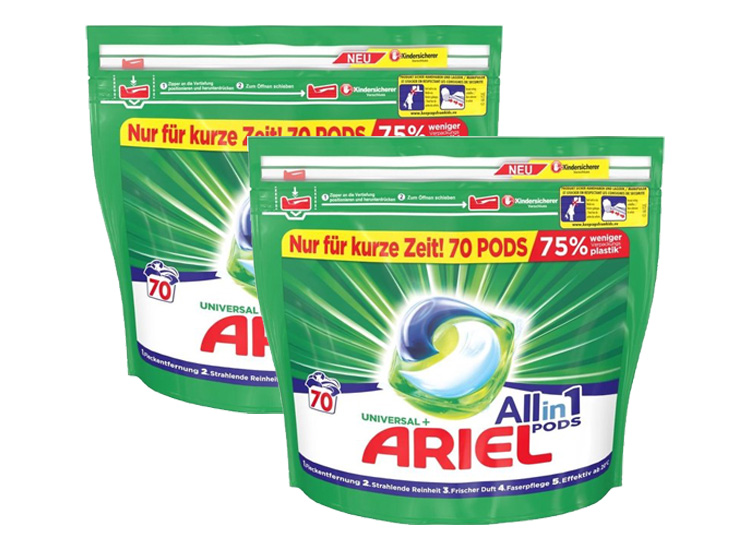 Aanbieding Ariel Pods – 140 wasbeurten Heb jij ook altijd het gevoel dat je veel wasmiddel verspilt wanneer je zelf de hoeveelheden moet afgieten in het bakje van de wasmachine? Dan zijn Ariel 3-in-1 Pods de ideale oplossing voor jou! Ariel Pods is het eerste wasmiddel met drie verschillende compartimenten. Het design van de Pods zorgt er voor dat al je was super schoon wordt, doordat de sterke eigenschappen afgescheiden blijven totdat de Pods oplossen in het water. Deze aanbieding van ariel wasmiddel zorgt voor 140x voordelig wassen. Zorgt voor stralend schone was De Ariel Pods hebben 3 delen die afgescheiden de was in gaan en tijdens het wasprogramma samen zorgen voor de beste en schoonste was-ervaring mogelijk. Ieder onderdeel van de Pods hebben hierbij zijn eigen actie, zo zorgen Pods ervoor dat was schoon is, vlekken worden verwijdert en je was straalt. Het vervangen van het traditionele wasmiddel door Pods bespaart ook nog eens een kwart aan wasmiddel.