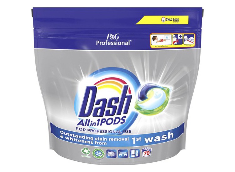 Aanbieding Dash Wasmiddel Dash Professional Wasmiddel All-in-1 Regular biedt een krachtige en efficiënte reiniging voor al je wasgoed. Deze capsules combineren wasmiddel, vlekverwijderaar en kleurbehoud in één eenvoudige stap, waardoor je was er stralend schoon en fris uitziet. Met 70 capsules per pak is dit wasmiddel ideaal voor huishoudens die op zoek zijn naar kwaliteit en gemak in één product. De capsules lossen snel op, zelfs in koud water, en bieden een diepgaande reiniging die hardnekkige vlekken aanpakt zonder je kleding te beschadigen. Krachtige reiniging in één capsule Dash pods bevatten geconcentreerd wasmiddel dat diep doordringt in de vezels van je kleding, waardoor vuil en vlekken effectief worden verwijderd, zelfs bij lage temperaturen. Vlekverwijdering zonder moeite Deze pods van Dash zijn speciaal ontworpen om hardnekkige vlekken zoals vet, olie en koffie aan te pakken, zodat je kleding er na elke wasbeurt weer als nieuw uitziet. Kleurbehoud voor langdurige frisheid Dash wasmiddel zorgt ervoor dat de kleuren van je kleding helder en levendig blijven, zelfs na meerdere wasbeurten. Dit betekent dat je favoriete kledingstukken langer meegaan. Gemakkelijk te doseren en te gebruiken Met de voorgeportioneerde capsules hoef je niet meer te knoeien met vloeibaar wasmiddel of poeder. Plaats simpelweg een capsule in de trommel en start de wasmachine voor een perfect schone was. Dash Professional All-in-1 Regular kopen De Dash Professional Wasmiddel All-in-1 Regular is de ideale keuze voor iedereen die o