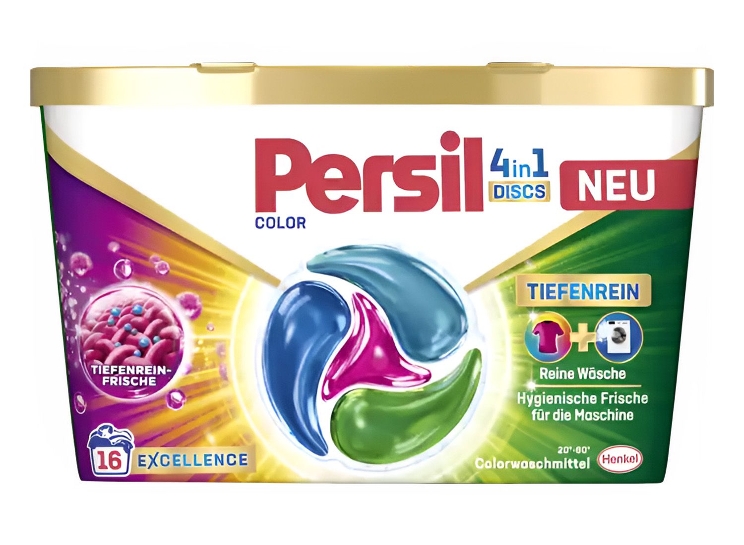 Persil Deep Clean Color 4-in-1 Discs zorgen voor een stralend schone gekleurde was én voor een fris ruikende wasmachine. De innovatieve formule dringt diep door in de vezels en verwijdert zelfs de meest hardnekkige vlekken moeiteloos. Deze krachtige capsules zijn speciaal ontwikkeld voor gekleurde was en behouden de kleurintensiteit was na was. Dankzij de hygiënische frisheid wordt niet alleen je kleding schoon, maar ook je machine blijft vrij van nare geurtjes. De discs zijn werkzaam vanaf 20 °C, waardoor je energie bespaart zonder in te leveren op resultaat. De verpakking bestaat voor 100% uit recyclebare papiervezels en de formule bevat 92% biologisch afbreekbare ingrediënten. Zo kies je niet alleen voor een schoon resultaat, maar ook voor een duurzamere wasroutine. Persil, al meer dan 110 jaar een vertrouwd merk, biedt betrouwbare kwaliteit met oog voor mens en milieu.